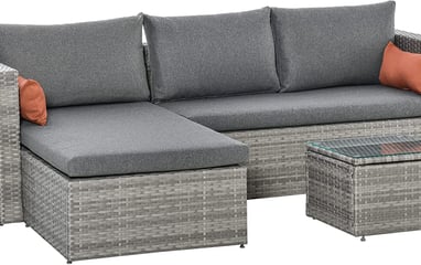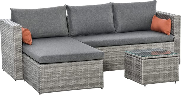 The Outsunny couch set is perfect if your backyard ranges on the smaller side and a perfect pair for the barbecue. It's grey colour also makes it great with colourful pillows for different occassions. You can find this set on Amazon here: https://amzn.to/3LiFIi3